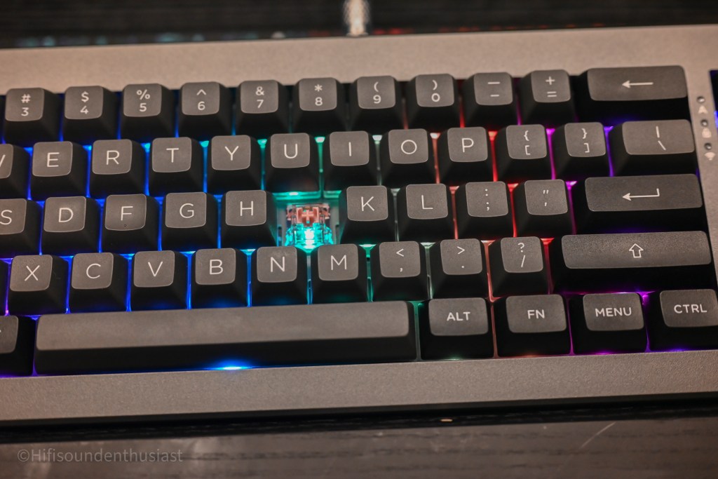 Personally though, for gaming, I find the switches being too light, with my own personal preferences with around the 45-60g actuation force for the key presses as they don’t make you “accidentally” press keys for gaming in a high intensity situation, although they are perfect for long-term typing in an office setting. They aren’t fatiguing and they make for fast typing when you need the email sent out or that report done. All while being very satisfied with the sound, as a major plus personally in the experience.
