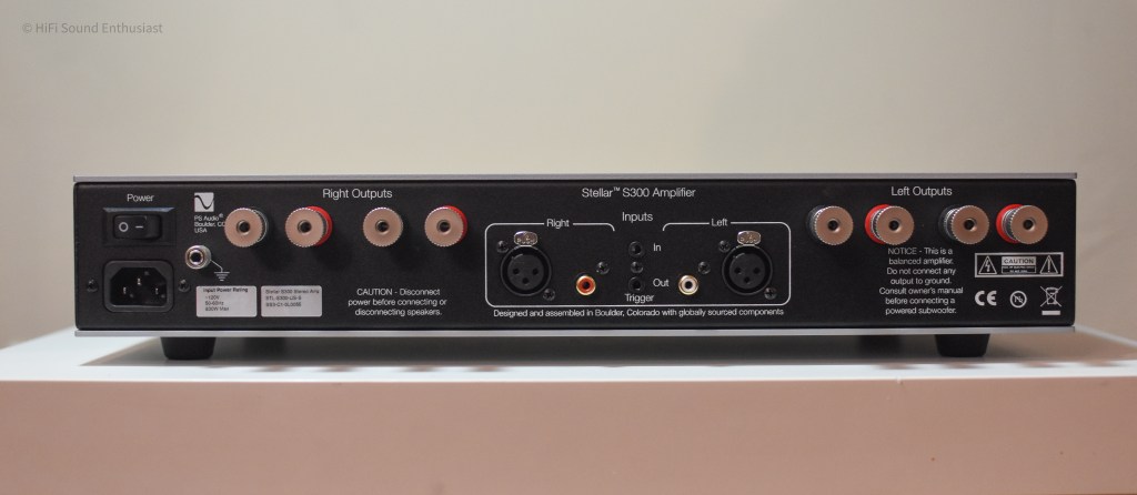 On the rear, the S300 is rather symmetrically organized, with the speaker level outputs on the outside of the product, and the inputs in the middle, offering both RCA and XLR forms of inputs. In the middle of the inputs are trigger inputs as well if such the user would like to pair it with another compatible product. To the left most on the rear, is also where the detachable power connector resides as well as a power switch right beside it on the bottom of the device. The symmetry is something I appreciate as it did make for recognizing which input goes where as well as which wires is specifically left and right input outputs. As there are 4 speakers level terminals on the S300, you can bi-wire your speakers if you so desire, which I personally found redundant and did not use for this review.